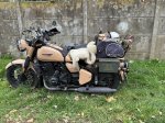 Il est venu avec cette magnifique moto : un side car chang-yang gardée précieusement et défendue par sa mascotte : son chihuahua !