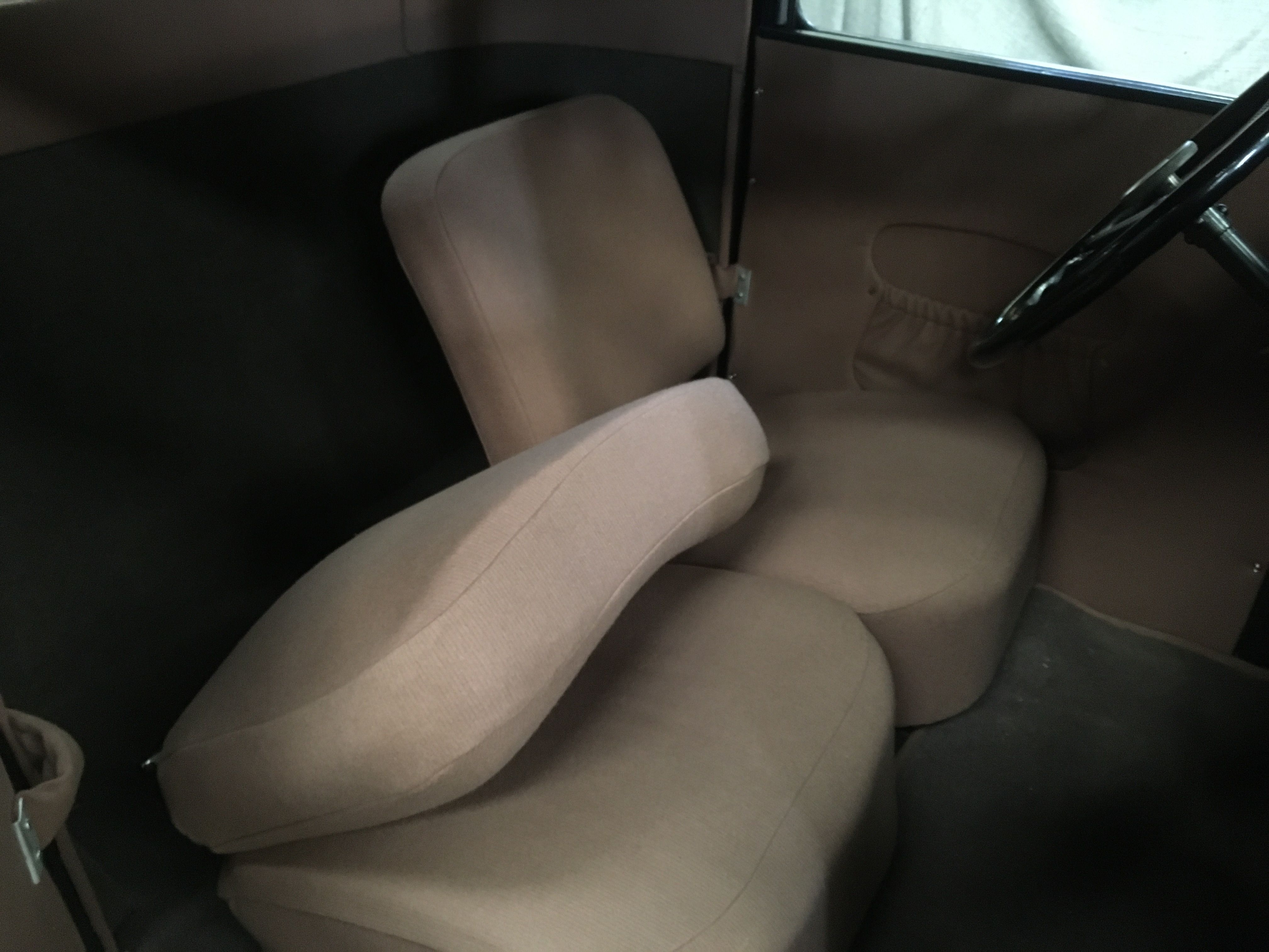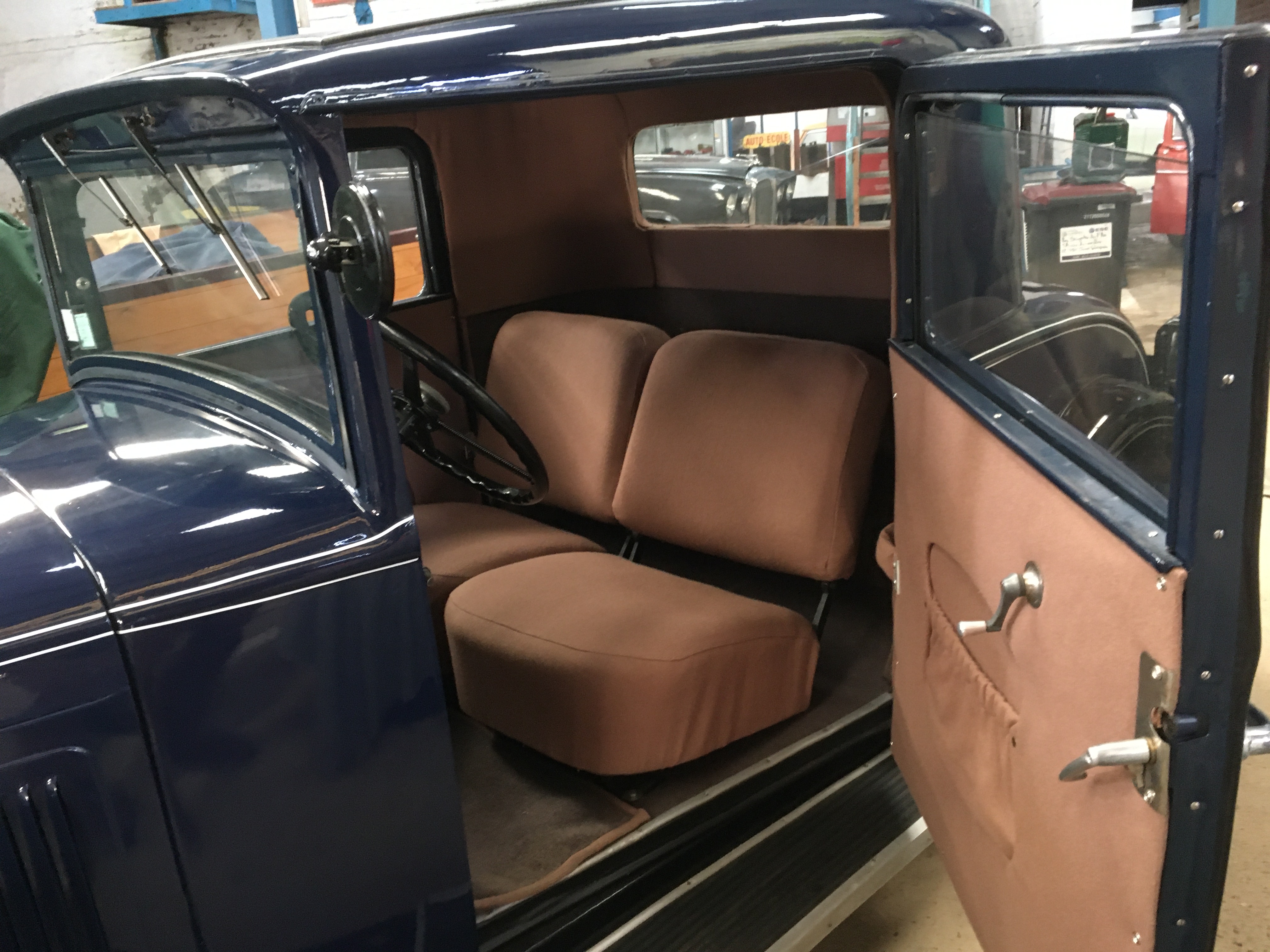 Cette version est pourvue d’un équipement complet : sièges avant réglables et indépendants, tableau de bord éclairé, plafonnier, sellerie en drap de luxe, phares et enjoliveurs chromés…mais, toujours avec essuie-glaces manuels ! Cette finition était disponible pour les clients les plus fortunés